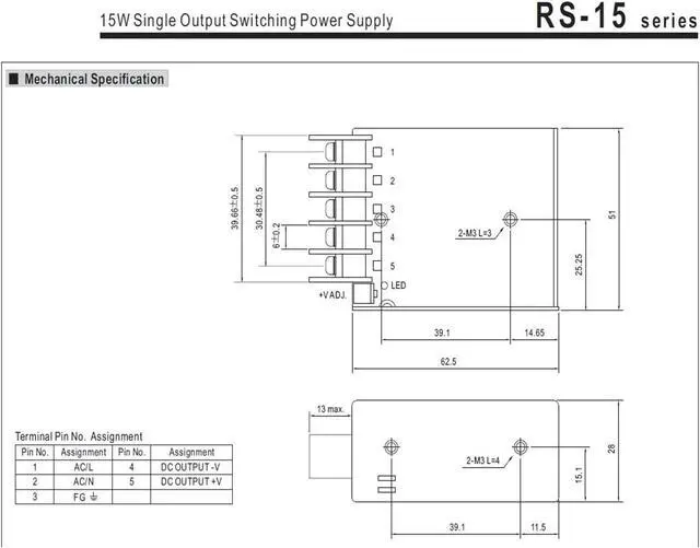Single Output Switching Power Supply RS-15-5 5V 3A 15W