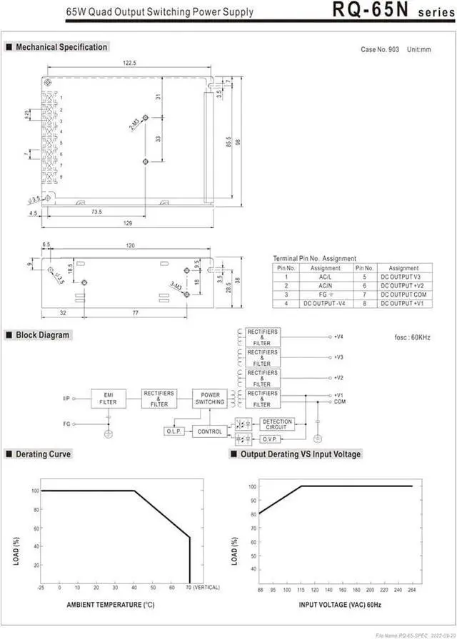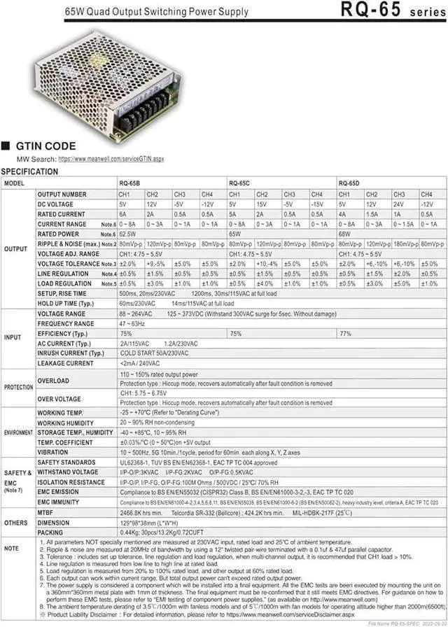 • RQ-65 RQ-65B/RQ-65C/RQ-65D 65W Quad Output Switching Power Supply International Universal Full Range Of AC Input
