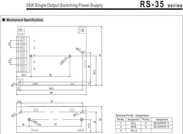 35w Single Output Switching Power Supply AC-DC RS-35-5 5V 7A
