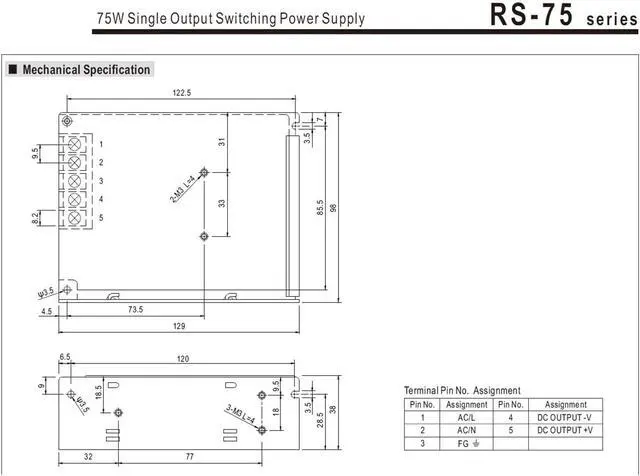 Single Output Switching Power Supply AC-DC RS-75-24 24V 3.2A