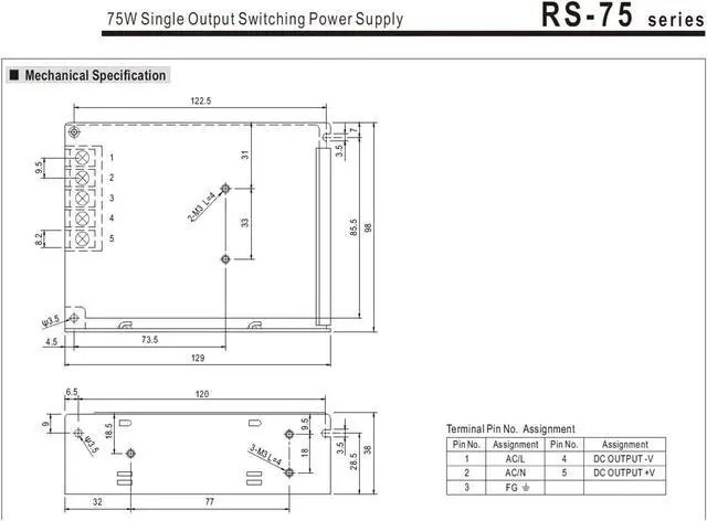 Single Output Switching Power Supply AC-DC RS-75-3.3 3.3V 15A