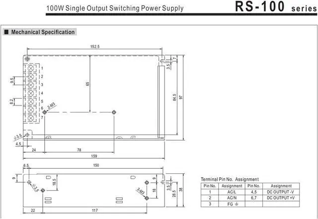 Single Output Switching Power Supply AC-DC RS-100-5 5V16A 100W