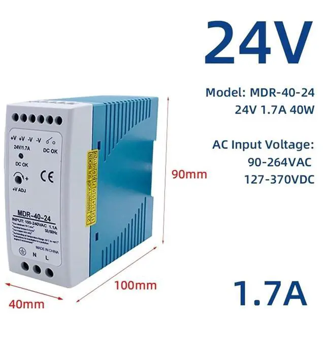 MDR-40W 60W Switching Power Supply SMPS 47-63Hz AC to DC 12V 24V Source Output Industrial Mini Voltage Transformer 1Pcs(MDR-40-24)