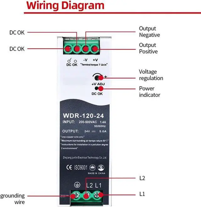 WDR-120W High Voltage Power Supply Input 200V-500VAC to 12V/24V Switching Power Supply(WDR-120W-24V 5A)