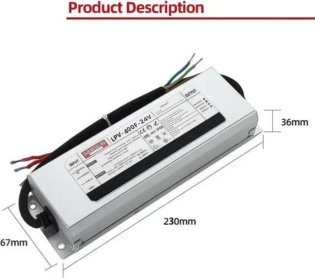 LPV-400F Waterproof Power Supply 400w 12v/24v Switching Power Supply LED Driver(LPV-400F-24V 16.7A)