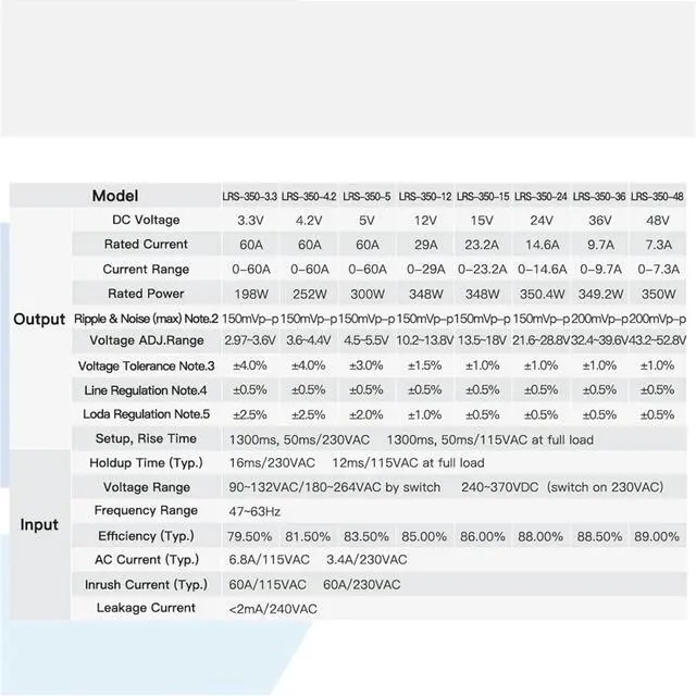 Switching Power Supply LRS-350 Switching Power Supply 12V 24V 36V 48V 350W Single Output Enclosed Type Switching Power Supply(15V)