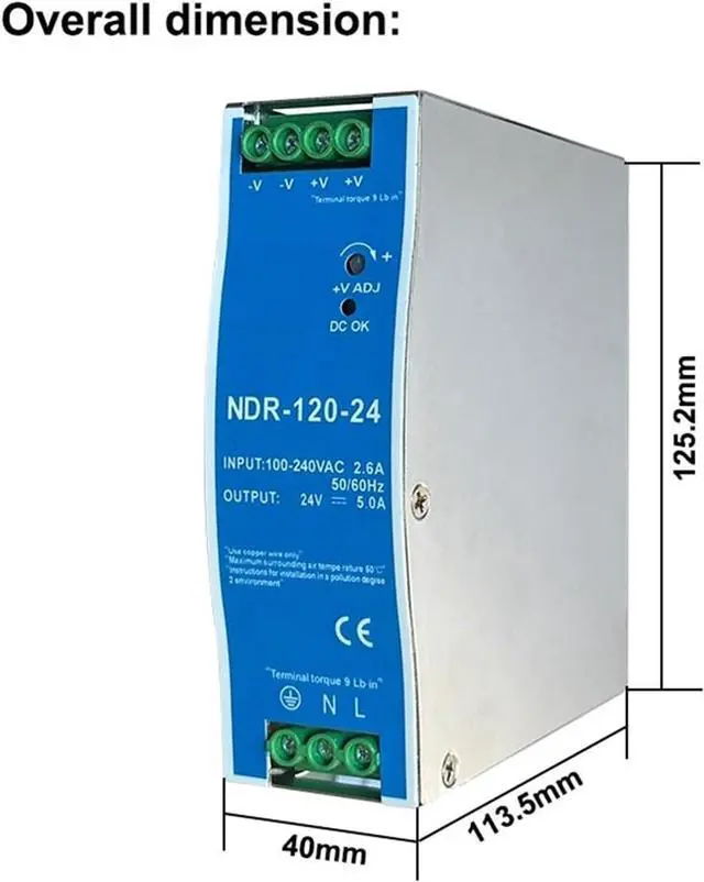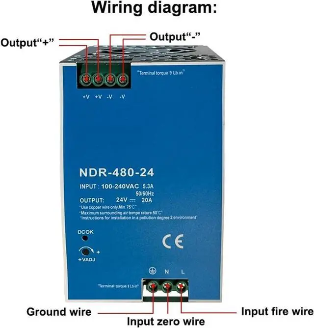 • 1pcs NDR-75W 120W 240W 480W 12V 24V 48V Switching Power Supply Industrial DIN Rail AC/DC Single Output Power Transformer
