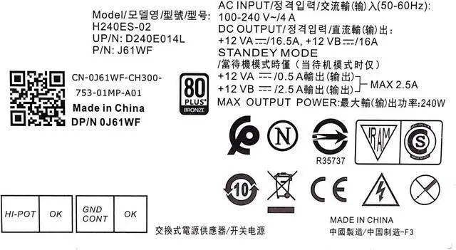 AC Input(50-60Hz): 100-240V~/4AMax Output Power:240W.