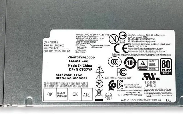 Stable Power for Heavy Workloads: Designed for Dell 3630 Tower PC, this L300EGM-00 unit delivers consistent 300W output to support demanding computing tasks without interruptions, insuring smooth and efficient system operation over extended periods.