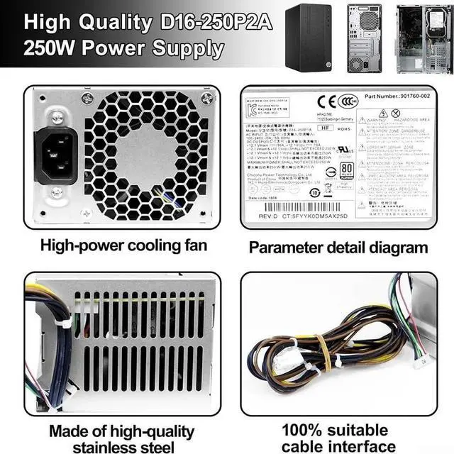 [POWERFUL COMPATIBILITY] This 250W D16-250P1A power supply supports a wide range of models including ProDesk 280, 282, 600, 800 G3, and more, making it an excellent choice for business desktops.