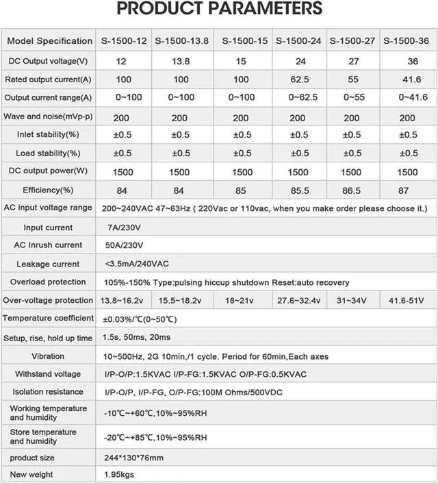 1. High Power Output: This 1500W DC regulated switching power supply provides a reliable and stable power source for various devices. Whether you need 12V, 13.8V, 15V, 24V, 36V, 48V, 60V, 72V, 80V, or 90V output