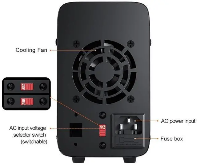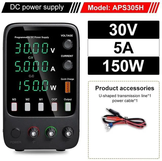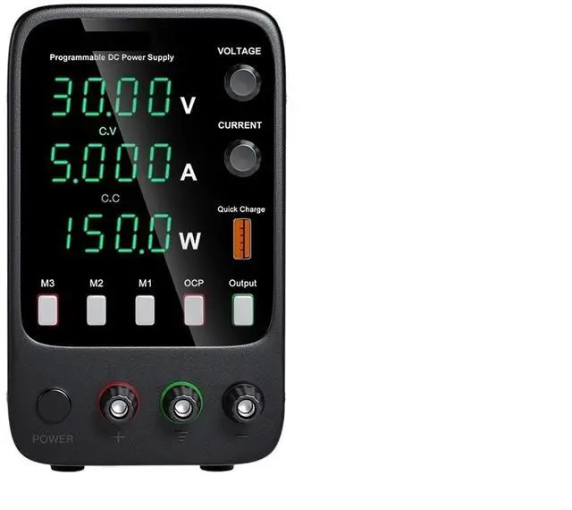 This model is a miniature switching DC power supply. The output voltage and current can be controlled and adjusted by variable resistors respectively, so it provides more convenience and accuracy in the adjustment of voltage and current. The panel also provides high-precision two/three-window digital tube display of voltage, current and power, so that users can intuitively see the current use status and various parameters of the machine