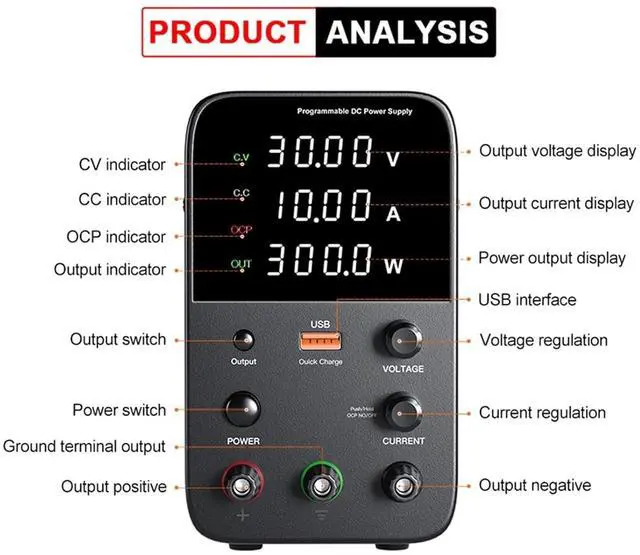 3.LED display of voltage, current and power, high precision and features of voltage stabilization, current limiting, and simple operation.