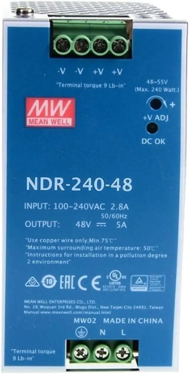• NDR-240-48 75W 120W 240W Industrial 12v 24v 48v 5a 10a Din Rail Slim Power Supply with PFC