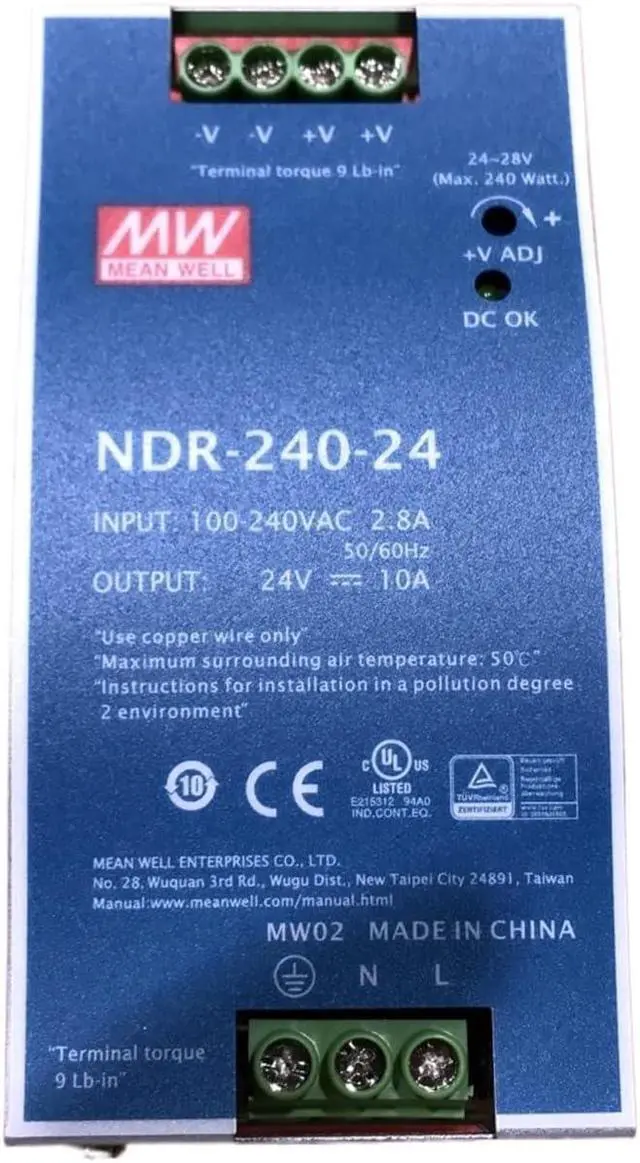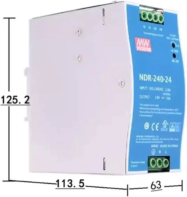 NDR-240-48 75W 120W 240W Industrial 12v 24v 48v 5a 10a Din Rail Slim Power Supply with PFC(NDR-240-24V)