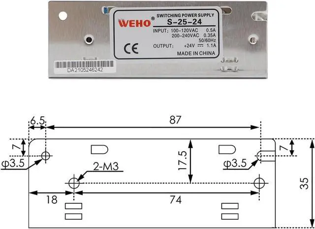 DC Switching Power Supply Input 25W Output 5/12/15/24 90-132VAC/180-264VAC by Switch 254-370VDC 47-63Hz(24V)
