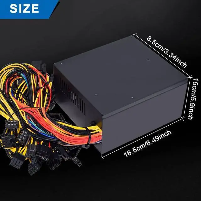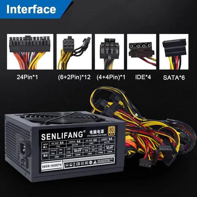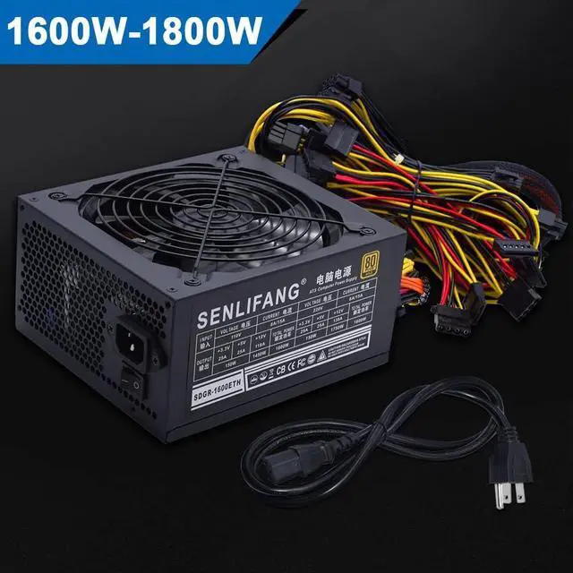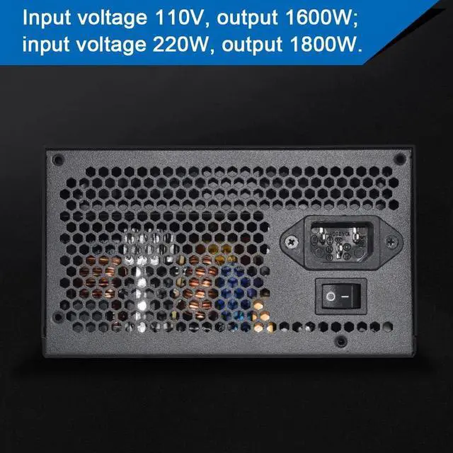 Professional ATX Mining Power Supply Support 6 GPU For ETH Bitcoin Ethereum Miner PSU, Input Voltage 110V, Output 1600W; Input voltage 220W, Output 1800W.