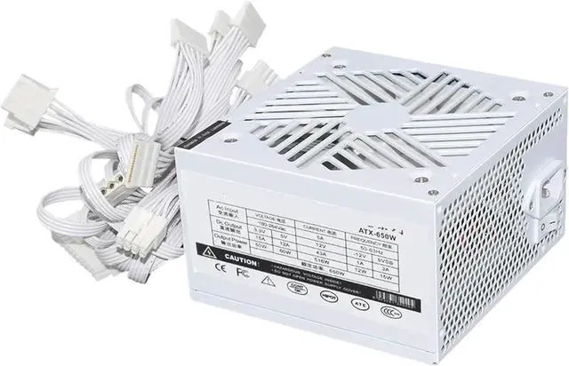• 110-264V 20+4Pin White Power Supply 650W E-Sports Video Game Computer PSU ATX-650W 12CM Low Noise Cooling Fan