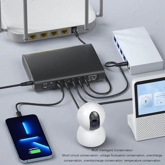 Power Sharing Functionality: Supports manual power sharing between specific DC outlets and is compatible with routers, modems, and security cameras to maintain equipment operation during outages.