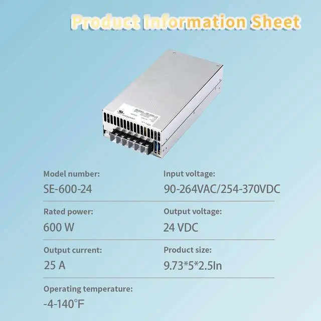 Industrial-Grade Precision: 24V (1.0% accuracy), 25A/600W, compatible with PLC/DCS/servo drives, no extra voltage conversion for continuous supply