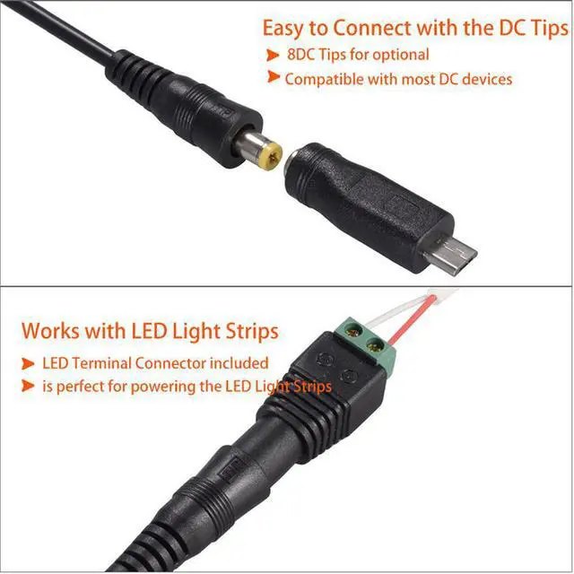 Output Voltage: DC 3V/ 4.5V /5V/6V/ 7.5V /9V/12V DC Tips Spec.: 5.5 * 2.5 mm, 5.5 * 2.1 mm, 4.0 * 1.7 mm, 3.5 * 1.35 mm, 3.0 * 1.1 mm, 2.5 * 0.7 mm, Micro USB, LED terminal connector