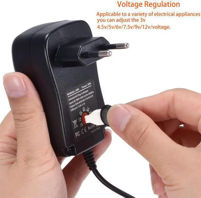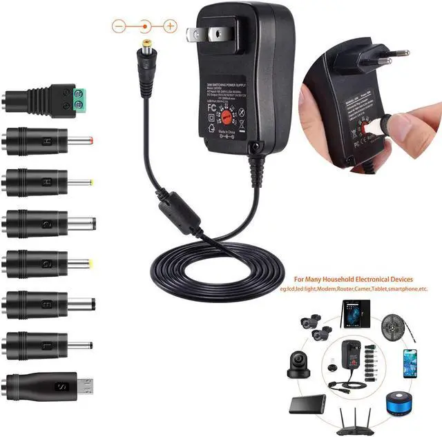 Features: This universal power adapter has selectable outputs: 3V/ 4.5V /5V/6V/ 7.5V /9V/12V. Comes with 8pcs different connector tips to satisfy your different need. Fit for 95% of home appliances, such as PC, speaker, routers etc. 5V 2.1A USB output port on the adapter for charging mobile phones and other USB devices.
