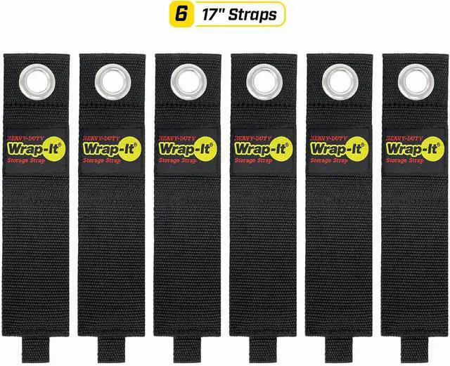 INCLUDES: (6) 17-inch x 2-inch Heavy-Duty storage straps with a stainless steel grommet. A great size for 50 ft. to 100 ft. extension cords, 25 ft. to 50 ft. garden hoses, air hoses and more!