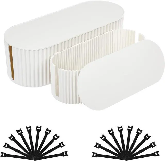 PACKAGE INCLUDES: The package comes with 1 large size white box1 small size white box and 20 cable ties. Tangled and lose cords can easily cause accidents and damages. Each box comes with 20 reusable cable ties, keep cable organized solve all your cord chaos.