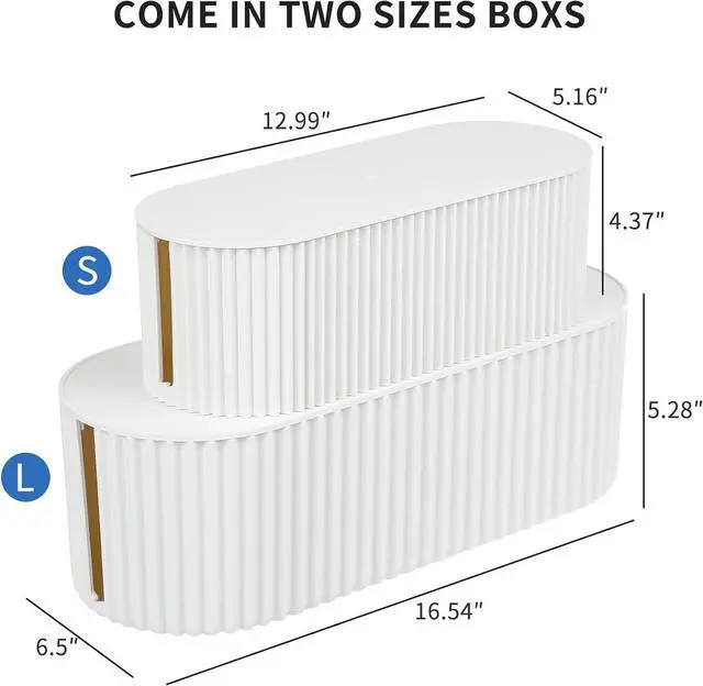 LARGE CAPACITY: Small size: 12.99x5.16x4.37, Large size: 16.54x6.5x5.28. Heightened and widened design, general power strips can be accommodated well. Streamlined design which can hides and organizes your cables easily to keep your cables organized and suitable for most wires and cables in your home and office.