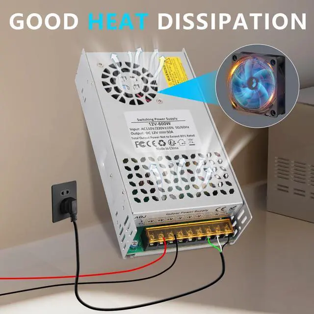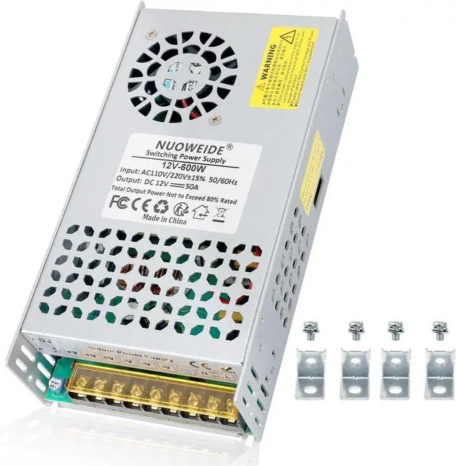 Long Service Life: DC 12V power supply shell is made of frosted aluminum alloy, durable and won't scratch, long service life. For the 12V 600W power supply, it is recommended that the maximum rated power of the connected equipment load does not exceed 85%. Equipped with 4 mounting brackets and with a number of mounting holes reserved for easy installation and fixing, can hung on the wall.