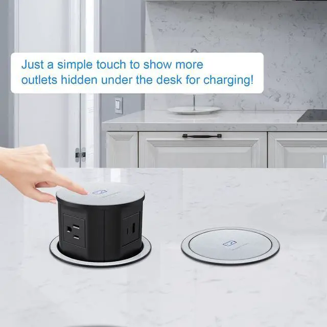 Retractable & HiddenFully retractable design,Just a simple press, this pop up outlet for countertop will automatically rise up. Hide it when you don't need it.