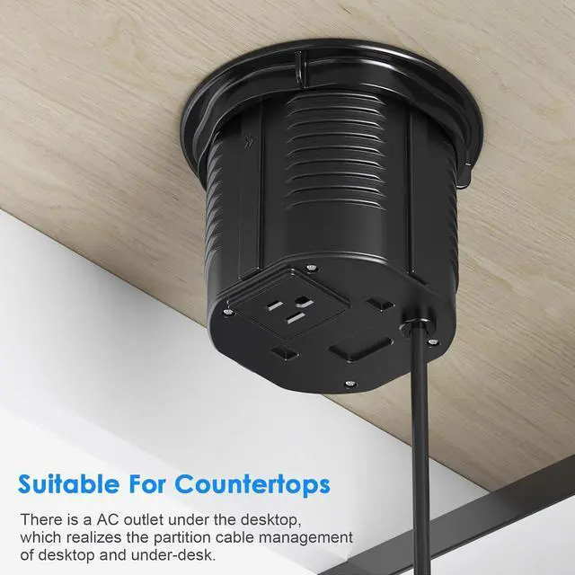 Easy To InstallCut a 4.7 inch hole, remove the ring and slide the pop up countertop outlet body from top, screw the ring tight from bottom. With no messy cables going around. Power cable length: 6ft.
