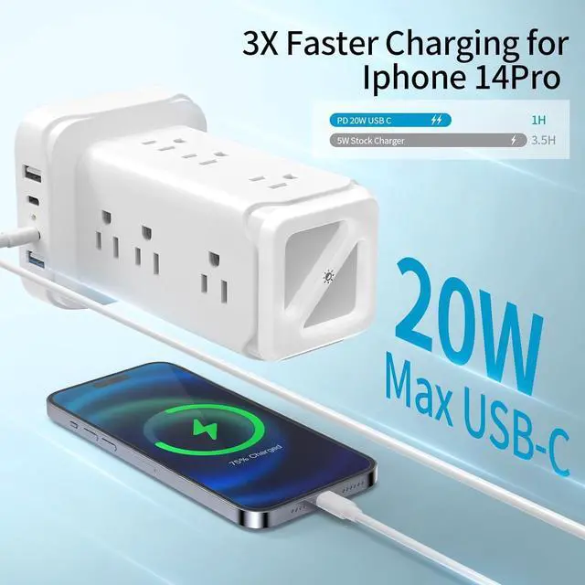 Equipped with surge protection (1800J), overload protection, short-circuit protection, over-current protection, etc. A reliable on/ off switch can automatically shut off and protect your expensive electronics like laptops, phones, tablets, TVs, etc., providing you with a safe and reliable charging environment.