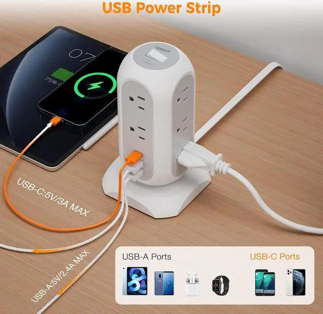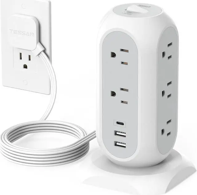 4-side compact design tower power strip takes up little space on your desk, cleans various cords and make your desktop organized; With 4 rubber feet at the bottom, efficiently keeps this 6 ft extension cord from slipping and sliding.