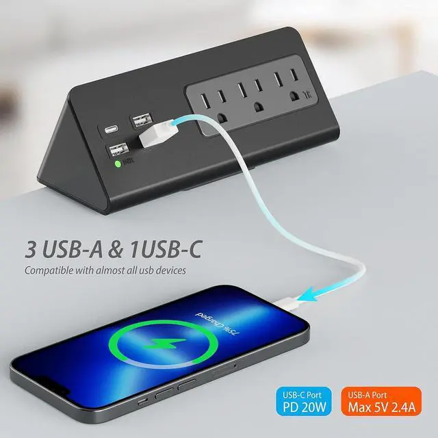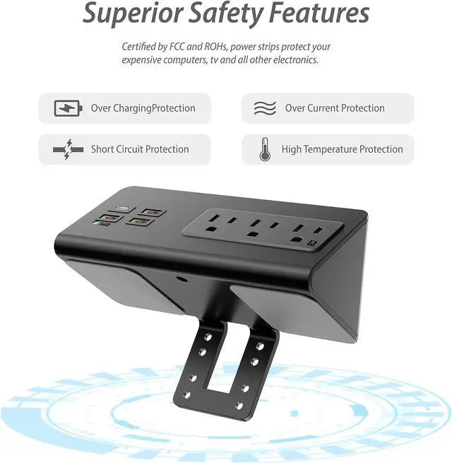 Multi-outlets support different type devices charging at the same time, desk edge mounting way helping save your tabletop space. Suitable for Home / Office / Hotel / Nightstands / Dormitory / Sofa Back and anywhere you may need charging station.