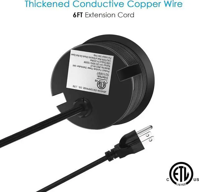 Rating: 125V/12A/60Hz, Maximun Output: 1500W, Power Cord: 6ft, USB Output: 5V/2.1A. 2 AC Outlet & 2 Charging USB Ports.