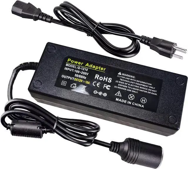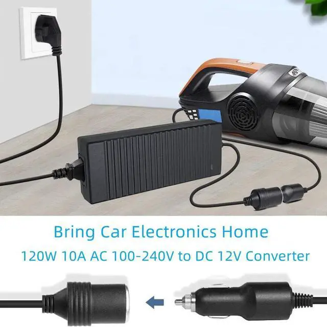 AC to DC Converter, 100V ~ 240V to 12V 10A 120W, Car Cigarette Lighter Socket AC/DC Power Supply Adapter Transformer for Tire Inflator, Car Refrigerator, Car Vacuum Cleaner, and Other Car Devices