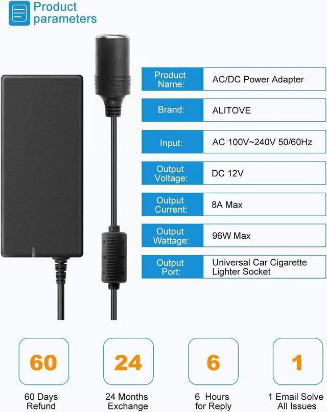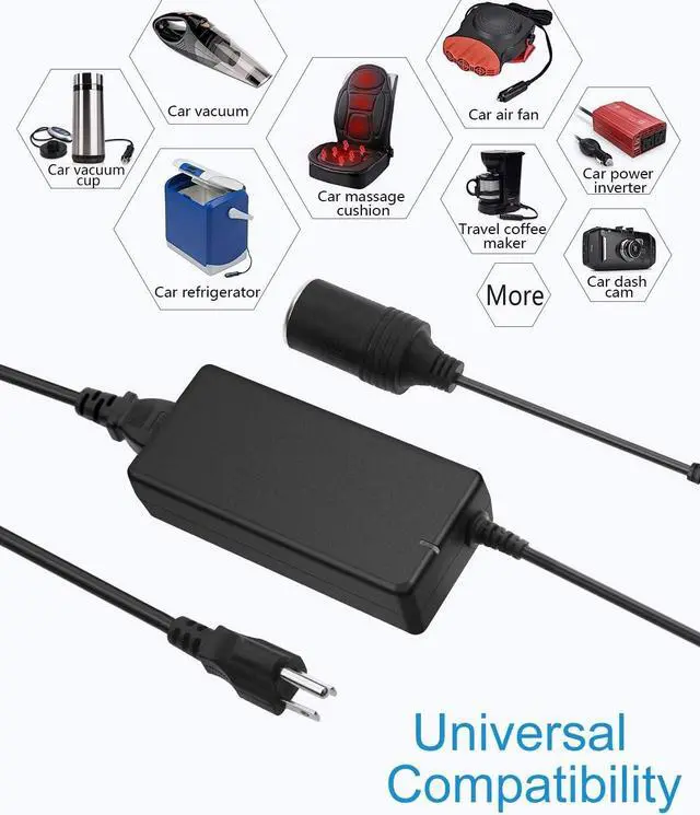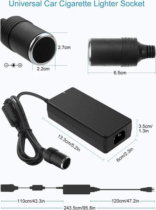 Converts 110V~240V AC household current to 12V 8A DC power with a 7.5ft extended power cord to reach a wide range. Get your car devices used at home now!