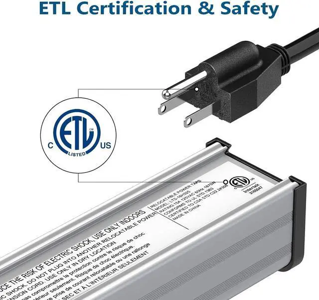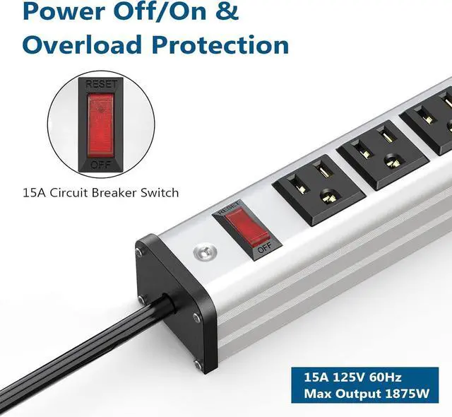 The heavy duty outlet strip (non surge protector) with ETL ccertification, comply with safety standards, and power switch with integrated 15Amp circuit breaker, you can use it with confidence,(60Hz/125V/1875W)