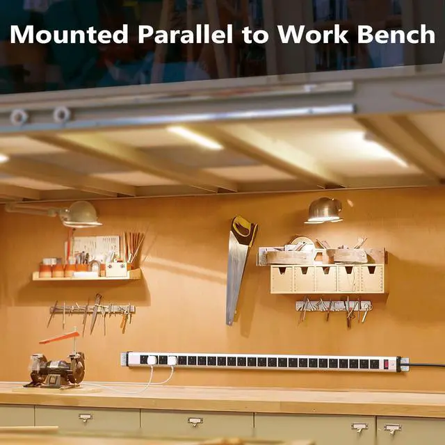 The commercial power strip is mountable on wall by horizontal or vertical, with mounting brackets and keyholes, our wall mount outlet power strip is very easy to use