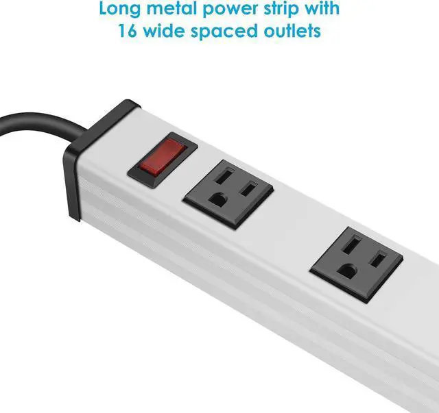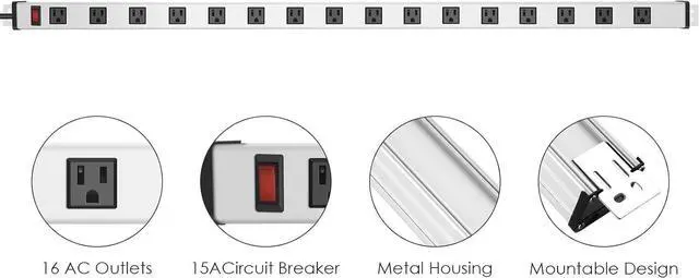 • Sturdy metal power strip, the outlets are tight, increase the outlet capacity to 16 outlets, widely spaced design will be suitable for larger plugs.