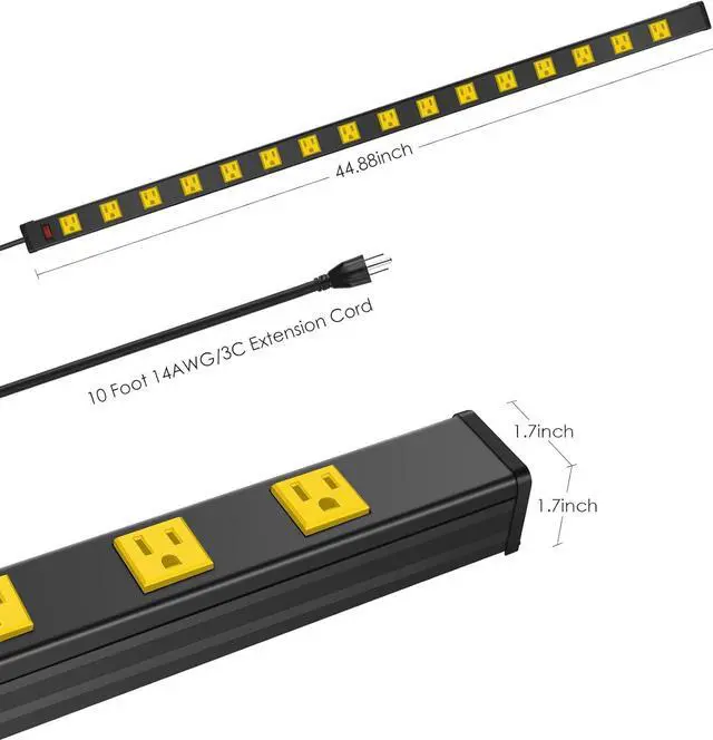Long Metal 16 Outlet Power Strip, Wide Spaced Garage Industrial Power Strip, Heavy Duty Power Strip with 15 FT Cord 15A, 125V, 1875W. Yellow