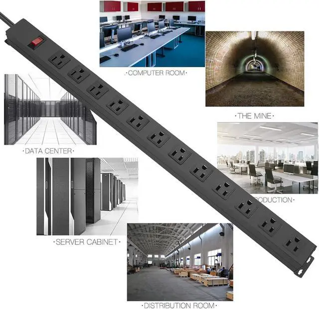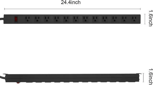 12 wide spaced outlets, the center-to-center distance between AC outlets is about 1.65inch(4.2cm), which is very suitable for large plugs. Connect with 15 ft 14AWG power cord. This long power strip Rating: 15A, 125V, 60Hz, 1875W.