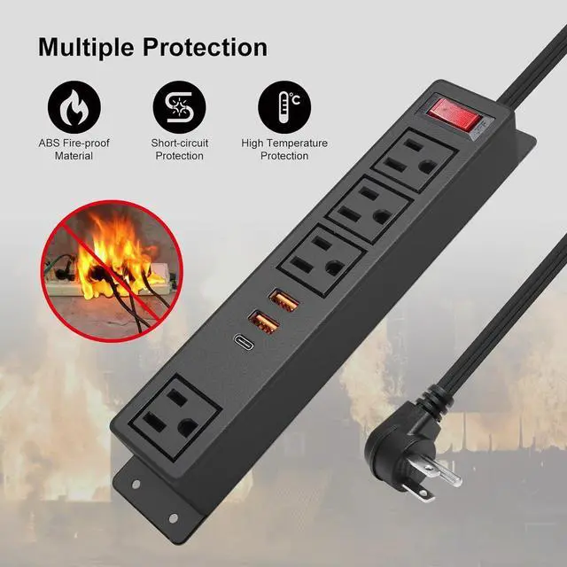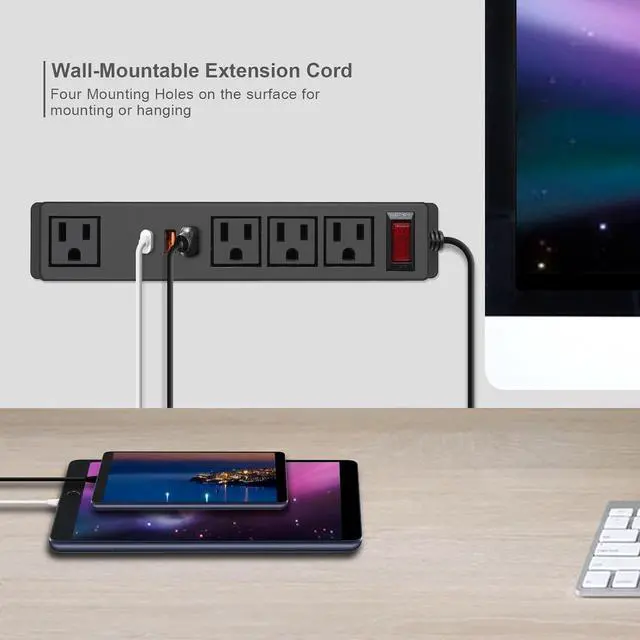 Mountable Power Strip - The power strip usbc has 4 mounting holes, easily to mount on the wall or desk side. Screws has included already.