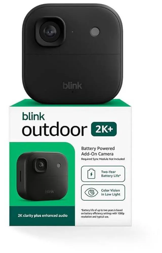 Battery-powered protection, now in 2K Blink Outdoor 2K+ is our next-generation wireless smart security camera that delivers an improved visual and audio experience with sharp 2K video resolution and Color Vision in low light.