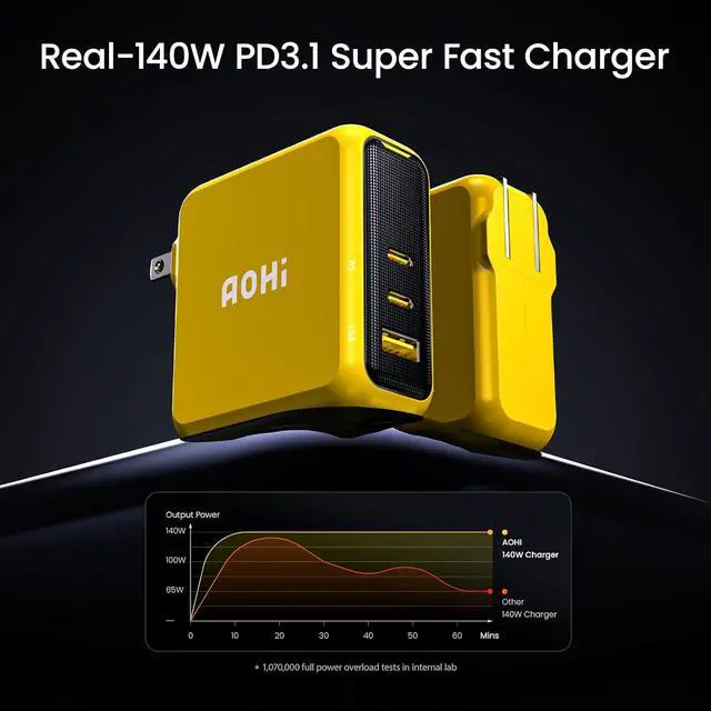 100W USB C Charger with Power Delivery. AOHI USB C wall charger supports up to 100W PD fast charging during single port use, allowing fast charging for MacBook Pro 16 from 0% to 45% in only 30 minutes and from 0% to 100% in about 1.8 hours, providing fast and efficient charging for laptops, tablets and phones. Advanced GaN+ tech also makes our charger smaller in size and bigger in power without generating excess heat