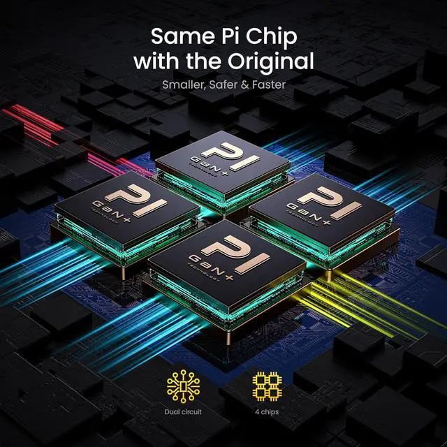 Compact Design & Multiple Safety Protection. Only 2.36*2.36*1.26inches in size and 0.44lb in weight, this GaN+ USB C fast charger features an ultra-compact, lightweight design with foldable prongs for maximum portability wherever you go, perfect for home, office and travel. Moreover, the charger is designed with over-current, over-voltage, over-heating and short-circuit protection