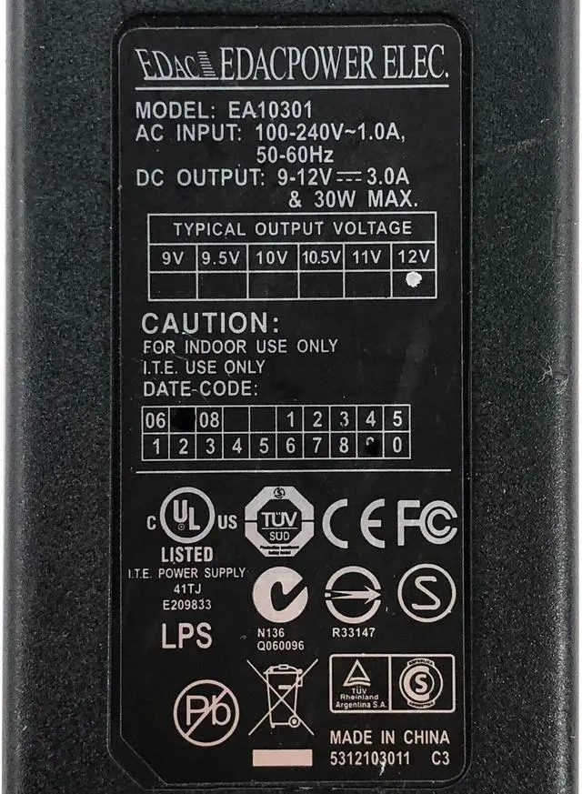 Genuine EdacPower AC/DC Adapter EA10301 12V 3A Power Supply w/Cord