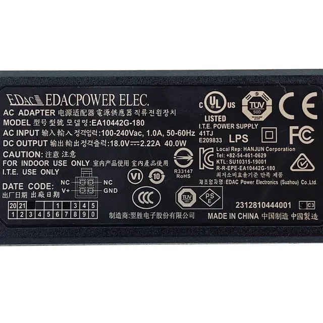Input: 100-240V~ 1.0A 50-60Hz