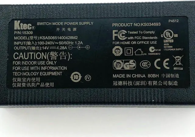 Genuine Ktec KSAS0651400428M2 Switch Mode Power Supply Adapter 14V 4.28A 60W wPC
